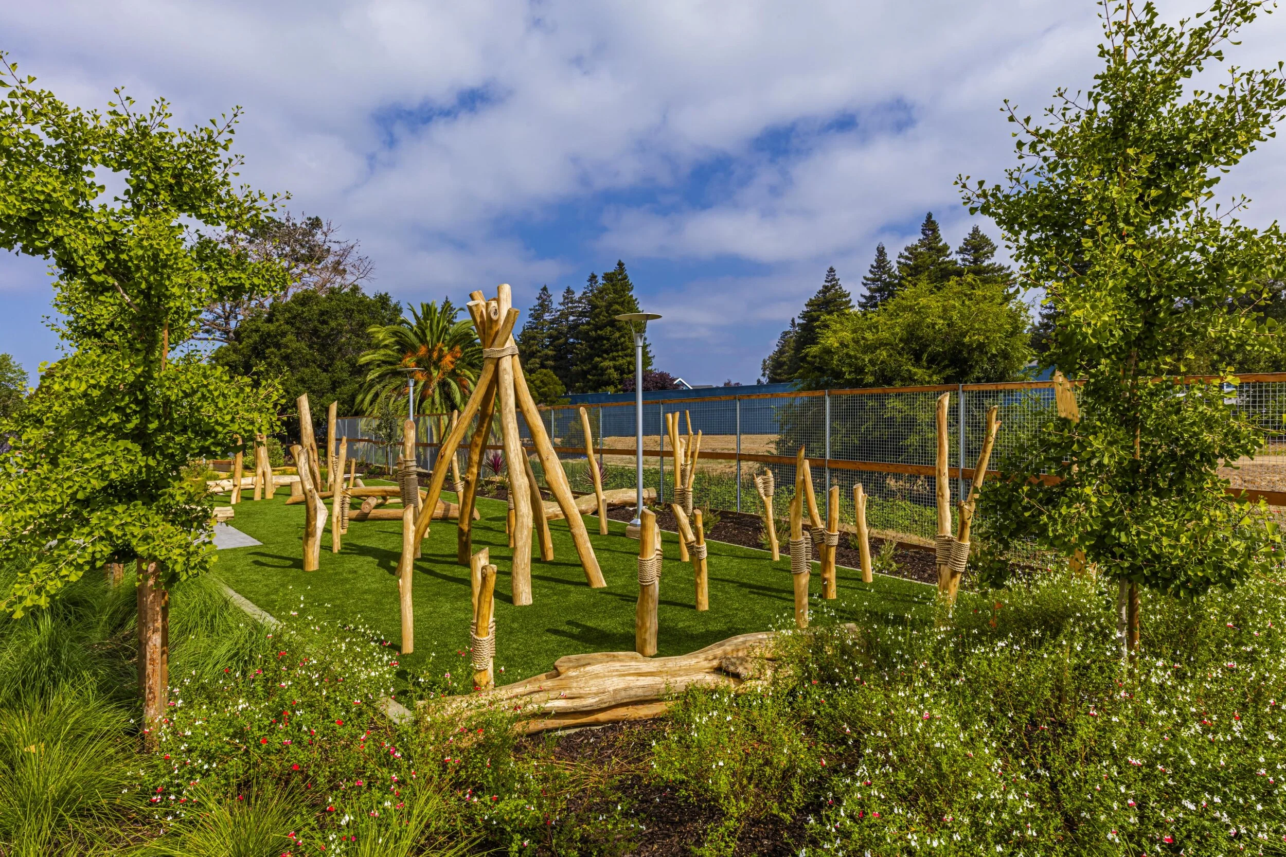 The landscape design harmoniously incorporates the forms and logic of the proposed buildings, extending the interior spatial experience into the outdoors. The plant palette is derived from California native plant communities found in the regions surrounding the site.