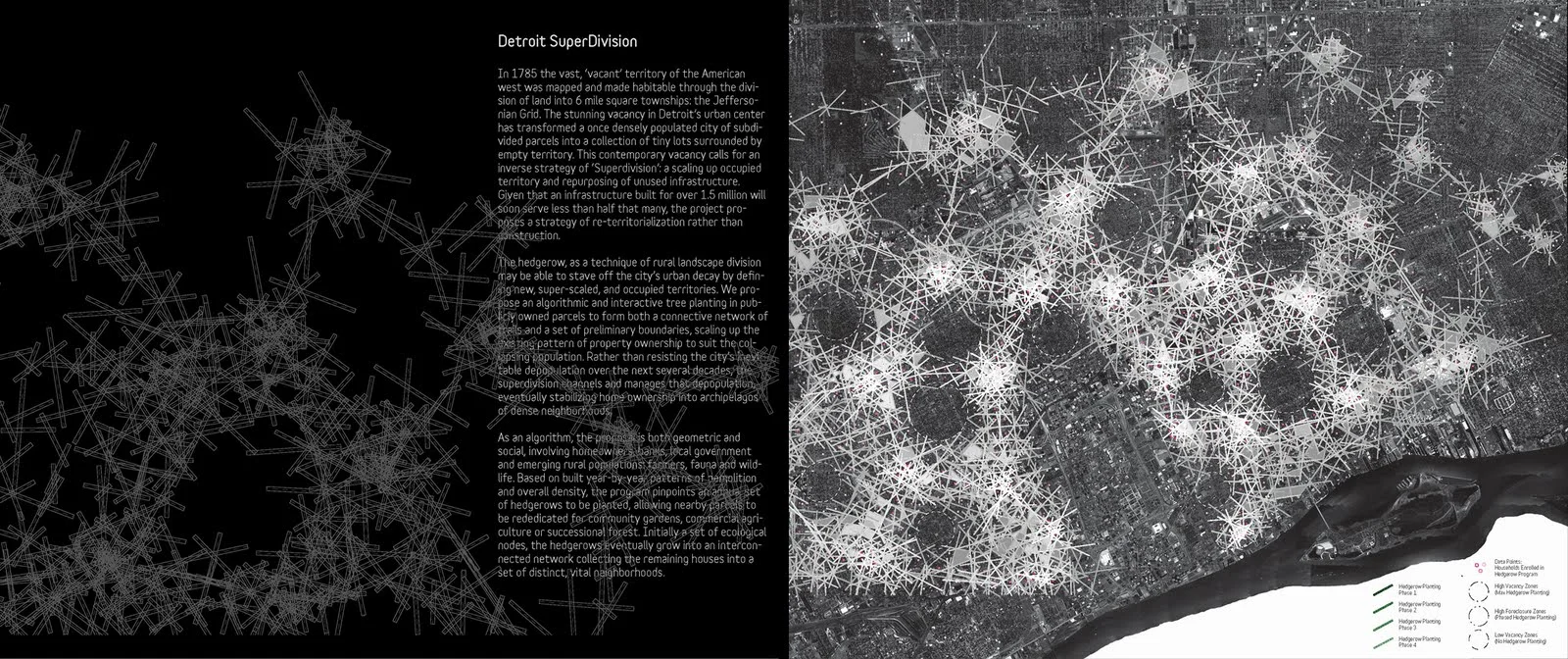 Fletcher Studio and Freeland Buck Detroit Superdivision submission to ACADIA was shown at this exhibition. The exhibition design utilizes a computation procedure that crowdsources the ACADIA community to uncover patterns of information that can be used to generate knowledge about contemporary technological issues. The objective of this pioneering protocol is to index the position of contemporary architectural ideas and concepts in relation to peer-reviewed projects, guest projects and the larger ACADIA community.