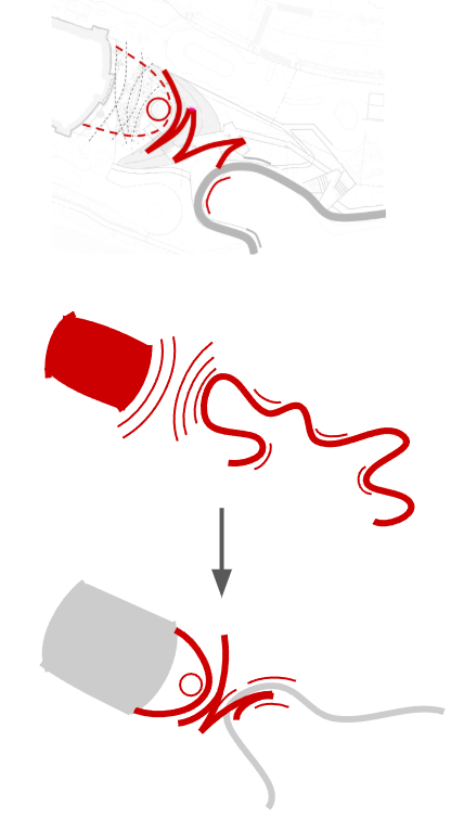 A series of terraces descend toward the river, creating a diverse and inclusive range of programmed spaces. Playground, fitness zones, and shaded picnic areas are thoughtfully distributed to support users of all ages. At the heart of the park, a generous open meadow unfolds, intended to host seasonal events, performances, and community gatherings.